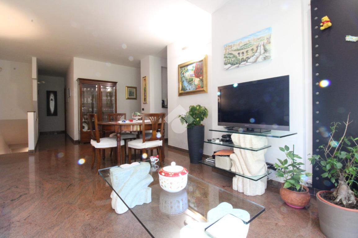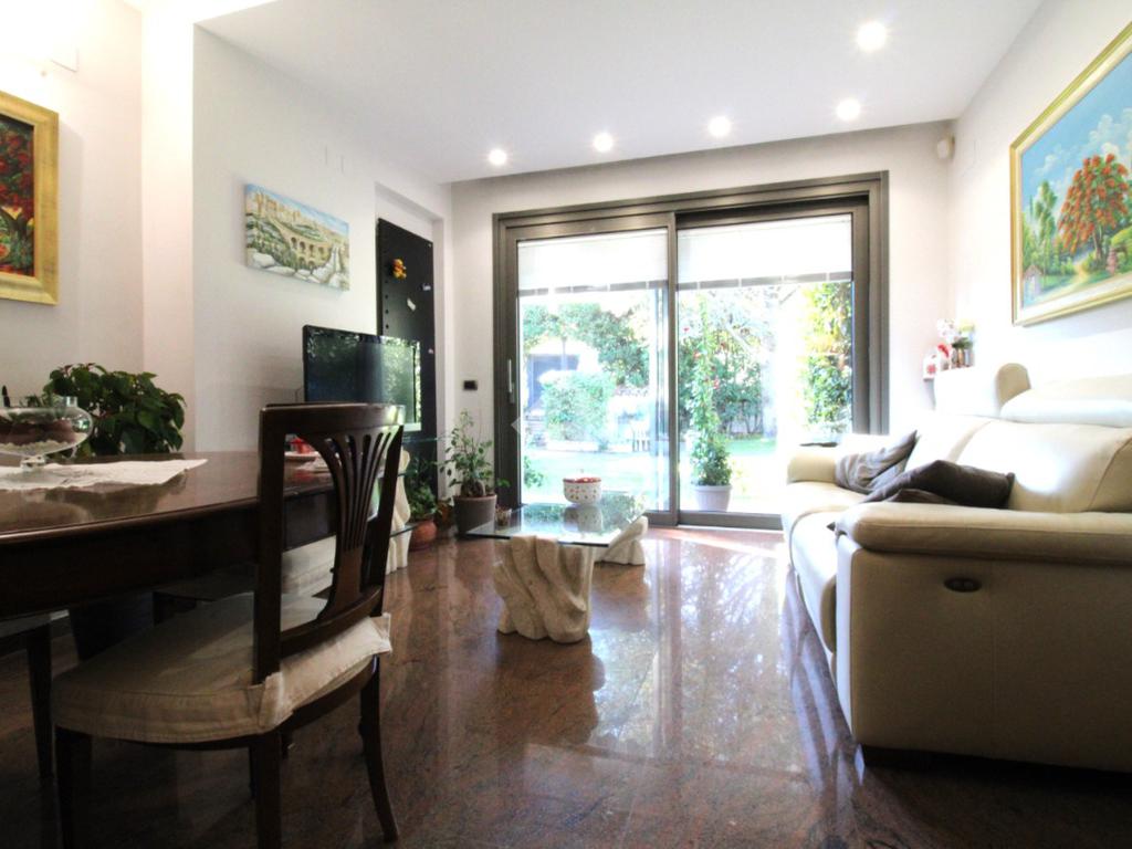 Via Carducci: proponiamo in vendita un duplex recentemente ristrutturato con giardino dotato di impianto di irrigazione automatizzato. Al piano superiore, la cucina e la sala si aprono direttamente sul giardino, creando un ambiente perfetto per momenti di relax e convivialità. Il doppio ingresso, uno dei quali dal giardino, garantisce praticità e privacy. La proprietà comprende tre camere da letto e due bagni, ideali per famiglie o chi necessita di spazio aggiuntivo. Al piano terra troviamo una moderna tavernetta con camino, bagno e le dotazioni moderne, spiccano i pannelli solari con batterie di accumulo, la pompa di calore , la caldaia ibrida e i termoarredi, che assicurano efficienza energetica e comfort abitativo. La sicurezza è garantita da un sistema di allarme, telecamere esterne, tapparelle elettriche e finestroni a triplo vetro con all'interno persiane oscuranti comandate elettricamente.